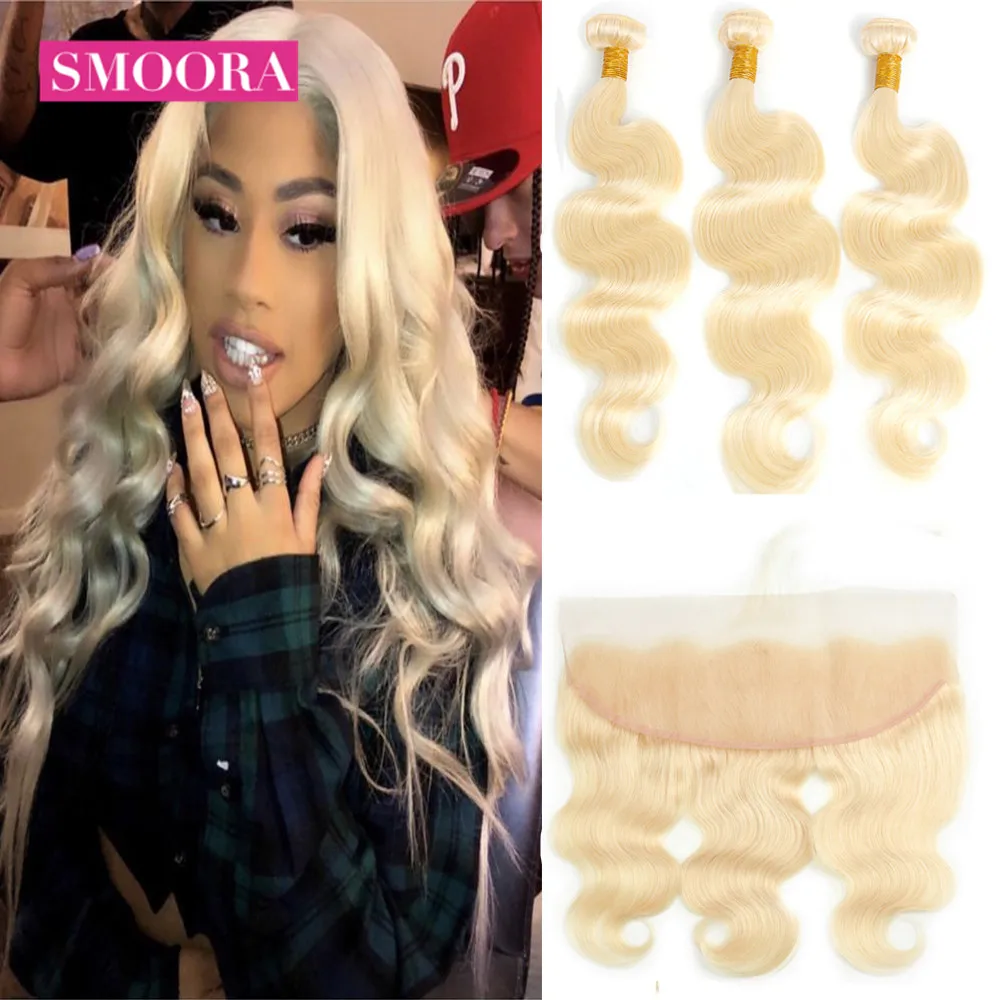Name: Smoora-extensiones de cabello humano con encaje Frontal, cabello brasileño Remy ondulado, 13x4, 2/613 Uds., Color rubio 3/4