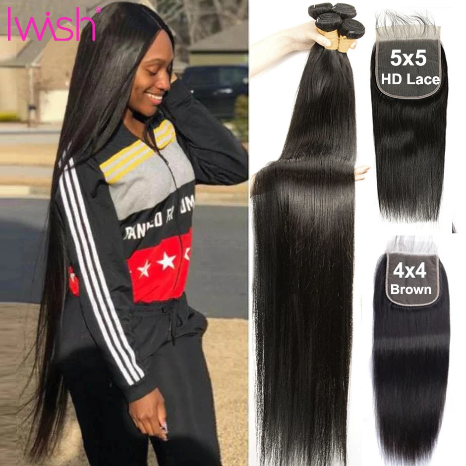 Mejor Extensiones de cabello natural de iwish Official Store por Extensiones de cabello humano peruano con cierre de encaje, mechones rectos de 30 pulgadas, 4x4, cierre HD 5x5, 3/4 mechones