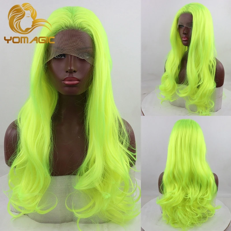 Name: Yomagic-peluca con malla frontal sintética para mujer, Color verde fluorescente, fiesta, fibra resistente al calor, encaje sin pegamento con pelo de bebé