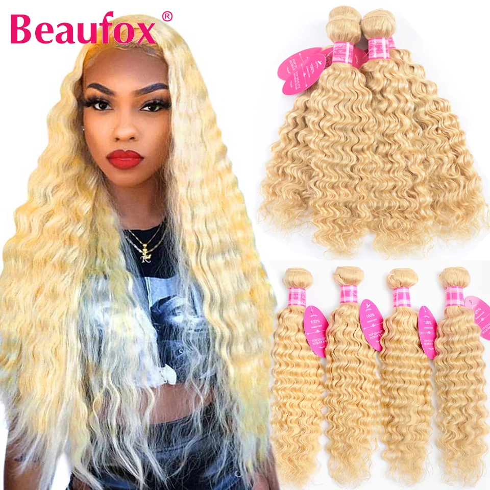 Name: Beaufox onda profunda 1/3/4/613 rubia mechones brasileño de la onda profunda extensiones de pelo ondulado 100% Remy extensiones de cabello humano 613 extensiones