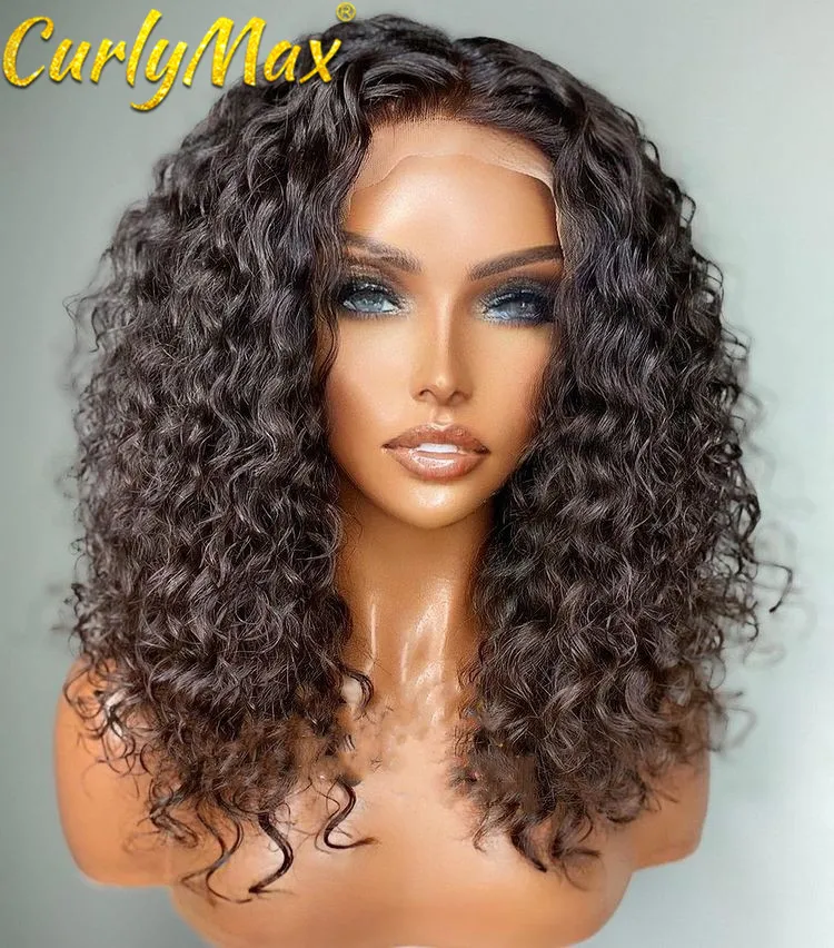 Mejor Pelucas de encaje de CurlyMax Store por Pelucas de cabello humano con cierre Frontal para mujer, postizo de encaje de 5x5 con ondas profundas brasileñas de 30 pulgadas, color Natural con agua rizada