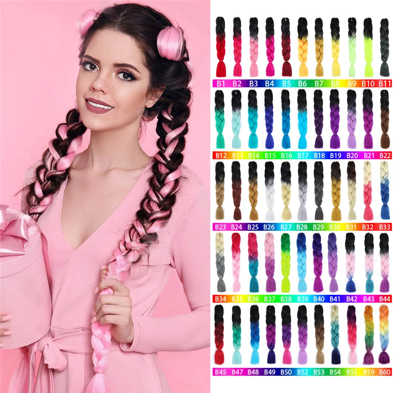 Name: Tamaño gigante sintético pelo trenzado 100g 24 pulgadas de fibra Ombre extensiones de pelo de la trenza verde rosa gris cabello Meches Africana pelo trenza