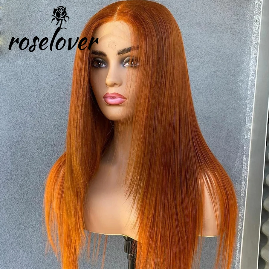 Name: Peluca de cabello humano ondulado brasileño para mujer, postizo de encaje frontal de 13x6, Color naranja jengibre, sin pegamento, 180% de densidad, Remy