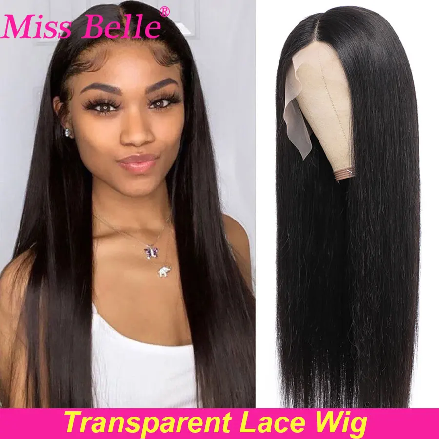 Mejor Pelucas de encaje de Miss Belle Official Store por Hueso recto frente de encaje pelucas de cabello humano transparente peluca Frontal de encaje T parte Remy brasileño recto peluca con malla Frontal 28 30 pulgadas